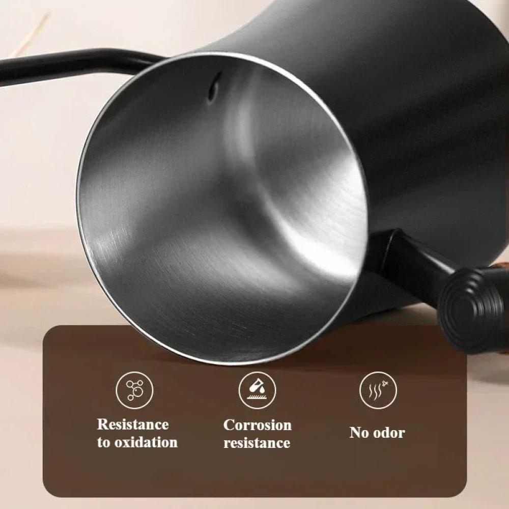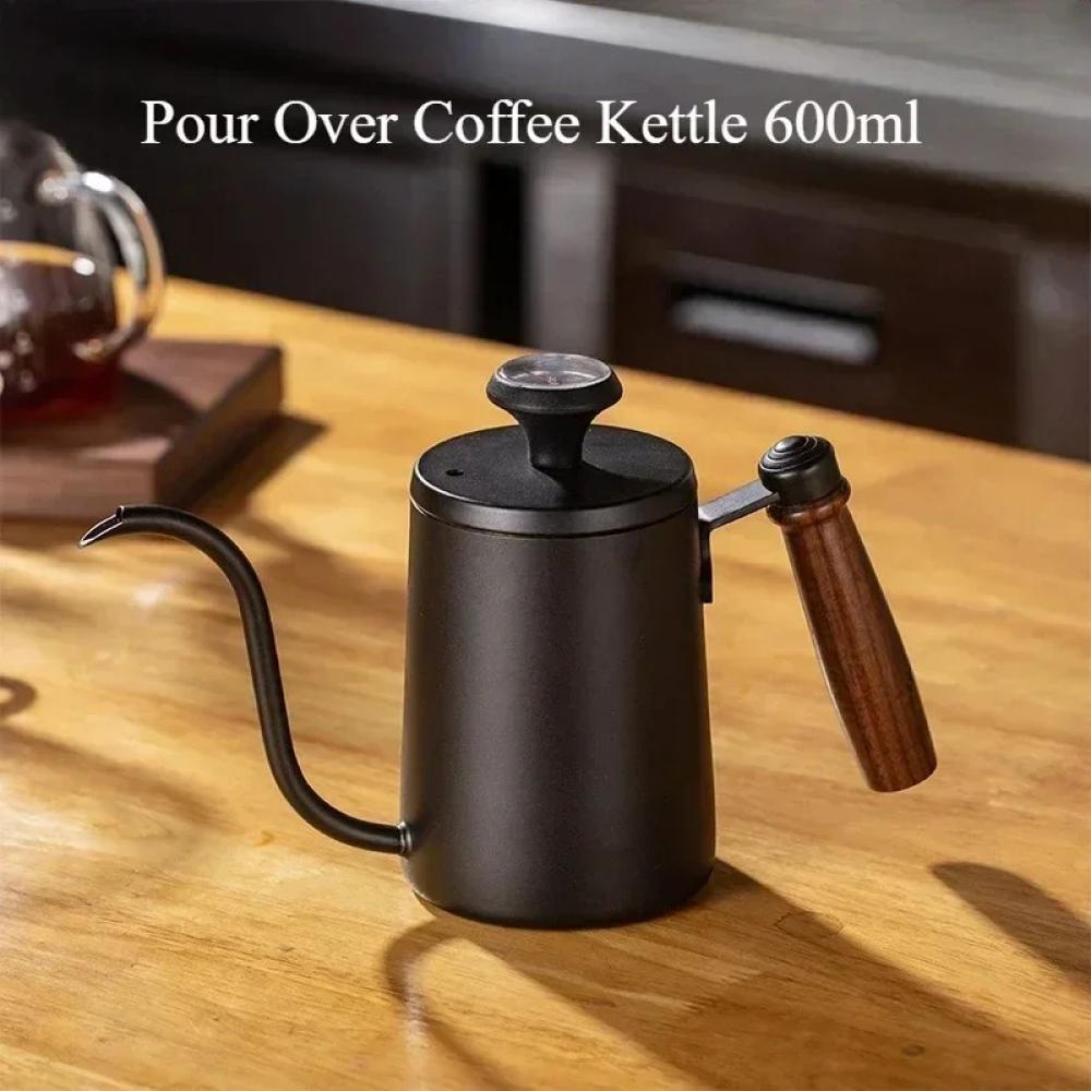 غلايه قهوه أنيقة بسعة 600 مل، مصنوعة من الفولاذ المقاوم للصدأ، تأتي بصنبور معقوف للتحكم الدقيق أثناء السكب. مثالية لتحضير القهوة المختصة بالتنقيط، بتصميم عصري ومقبض مريح يوفر تجربة استخدام احترافية ومريحة في كل مرة.